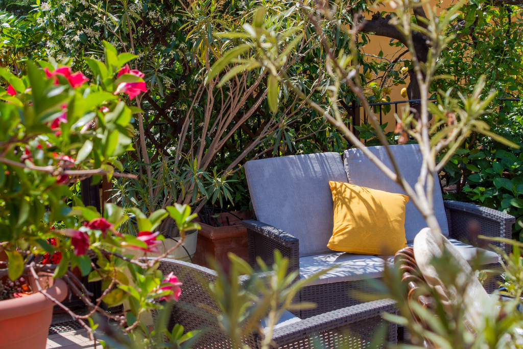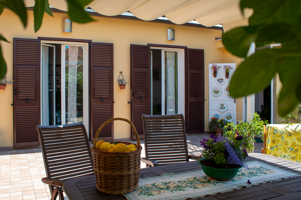 La stanza è dotata di aria condizionata caldo/freddo, TV sat e frigo bar. La camera si affaccia direttamente sull' ampio terrazzo-giardino mediante due ampie porte finestre.